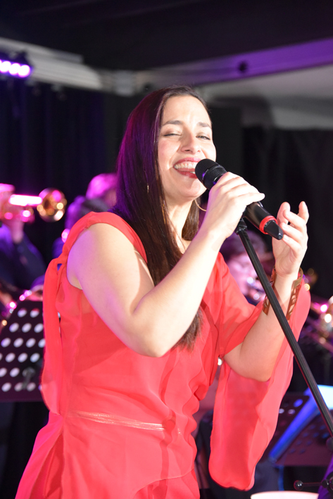 So kam eine moderne Interpretation von Bigband-Musik heraus, die sich weniger an einer swingenden und bluesigen Jazz-Tradition orientierte, sondern ganz bewusst die Dynamik und den Variantenreichtum des Funk in den Vordergrund stellte. Nachdem mit den Auftaktstücken „Bigger Picture“ und „Natural High“ das Thema dynamisch gesetzt worden war, wusste Kaye-Ree auch mit Tiefgang in Text und Melodie zu überzeugen. Überhaupt merkte das Publikum durchgängig, dass die dargebotenen Werke bis auf zwei Ausnahmen aus Kaye-Rees eigener Feder stammten, weil sie stets eine Geschichte oder Gegebenheit rund um den nächsten Song anzumoderieren wusste. „Forward“ ist so ein typischer Vertreter diese Gattung, geht es im Text doch um den Appell, den Blick nach vorne zu richten um das Jetzt zu genießen, anstelle mit zu vielen Gedanken in der Vergangenheit verhaftet zu bleiben.